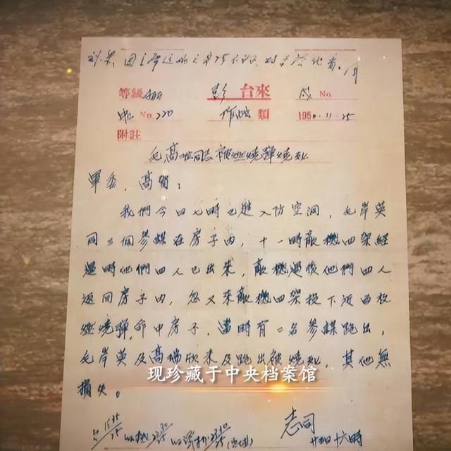 抗美援朝战争爆发七十周年之际,一份绝密档案解密。这是一封电报。电报很短,只有一百一十四个字。写电报的人是彭德怀。收电报的人是毛泽东。这封电报记录了中国人民志愿军一位重要战士牺牲的经过。这位战士是毛岸英。